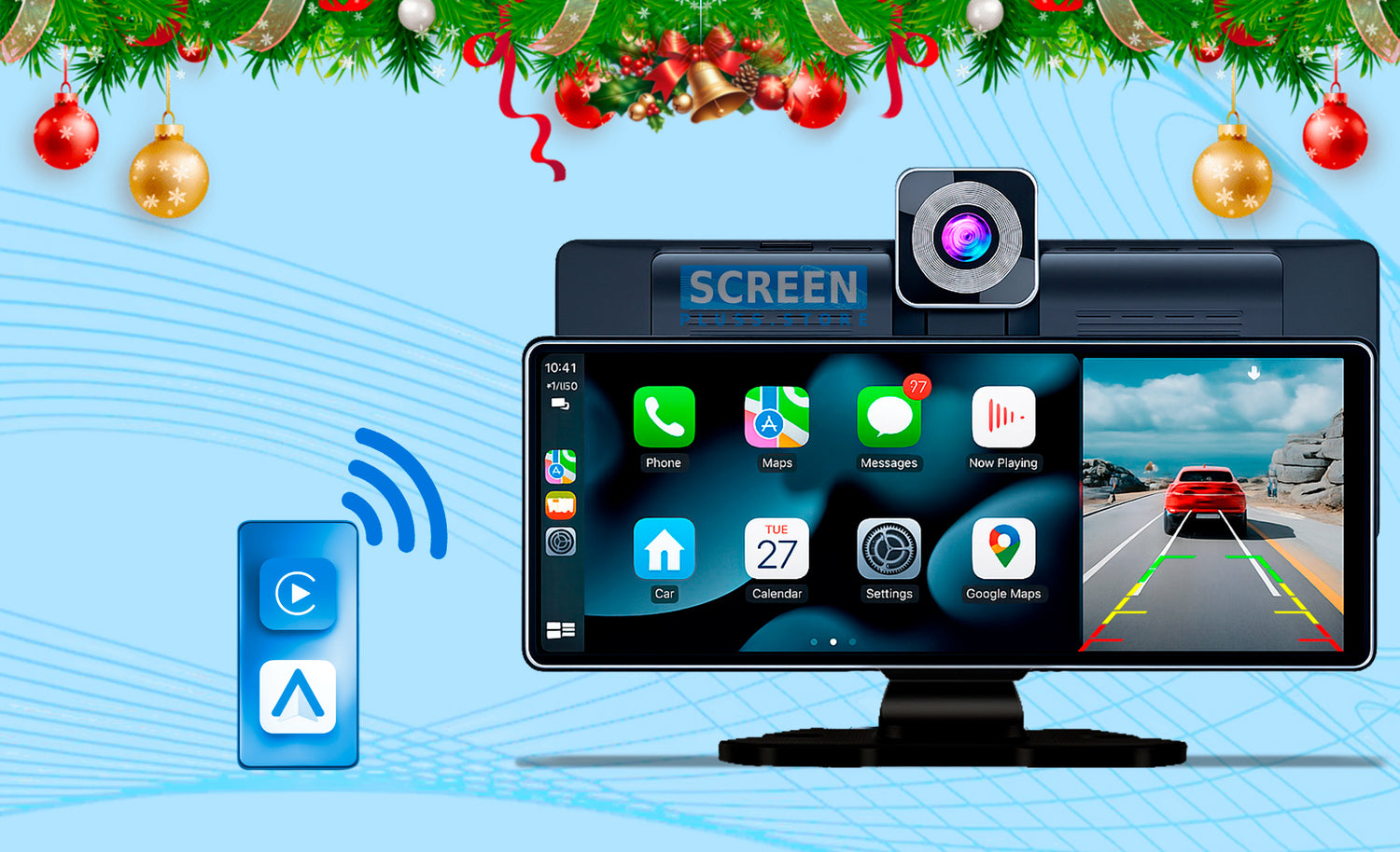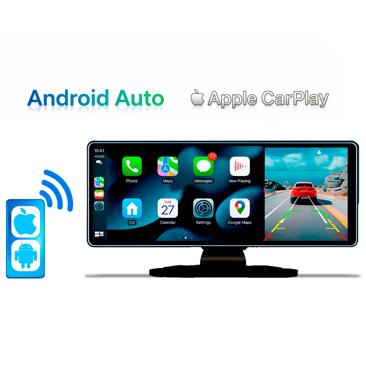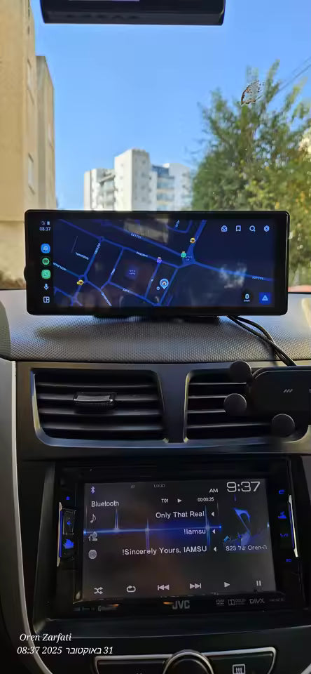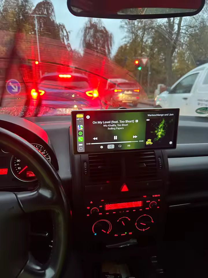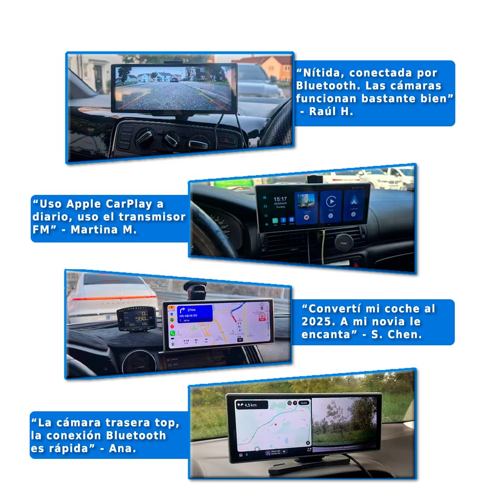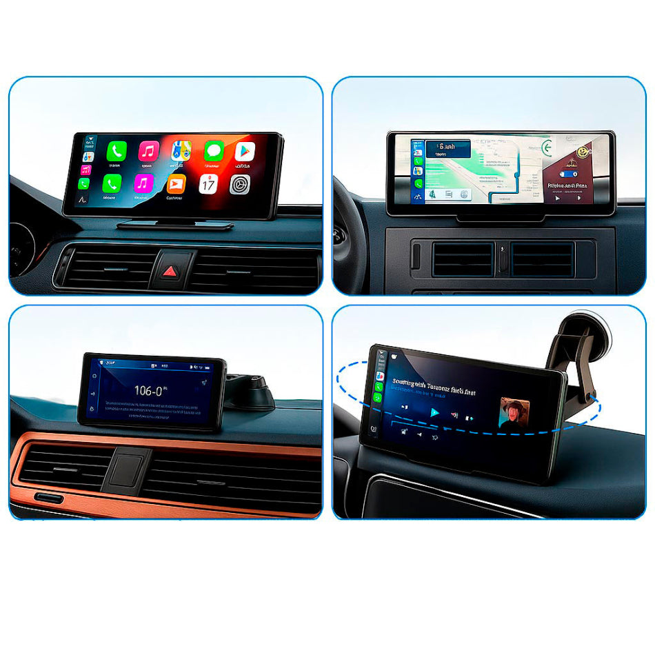 Esta pantalla inteligente transforma tu coche en una experiencia. Simplemente conéctala vía 12V y disfruta de un acceso fluido a Android Auto y Apple CarPlay, sin necesidad de configuraciones complicadas. Conecta tu teléfono por Bluetooth y controla tus aplicaciones favoritas, mapas, música y mensajes directamente desde la pantalla táctil.